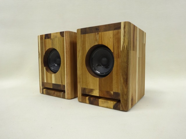 ADB6W-P01★Hand Made Speaker / アカシア集成材t10mm デスクトップ ダブル バスレフ エンクロージャー & Peerless 2.5" FRユニット