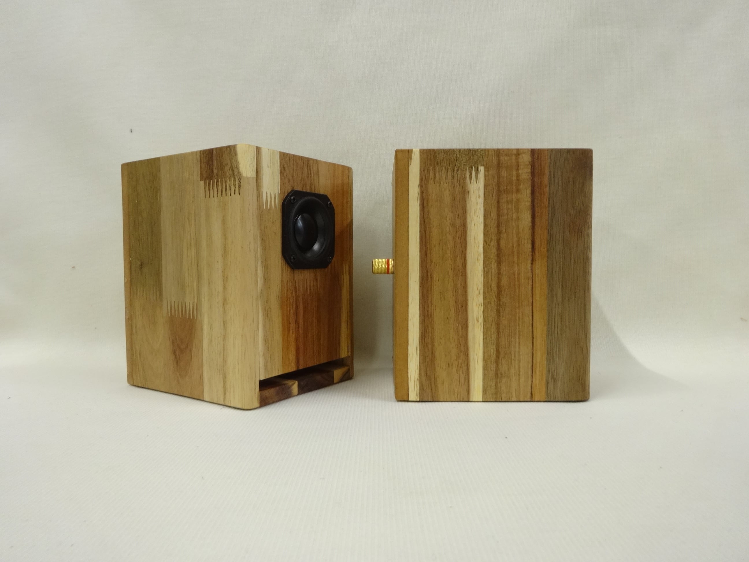 ADB5W-PE01★Hand Made Speaker / アカシア集成材t10mm デスクトップ ダブルバスレフ エンクロージャー & Peerless 2” FRユニット