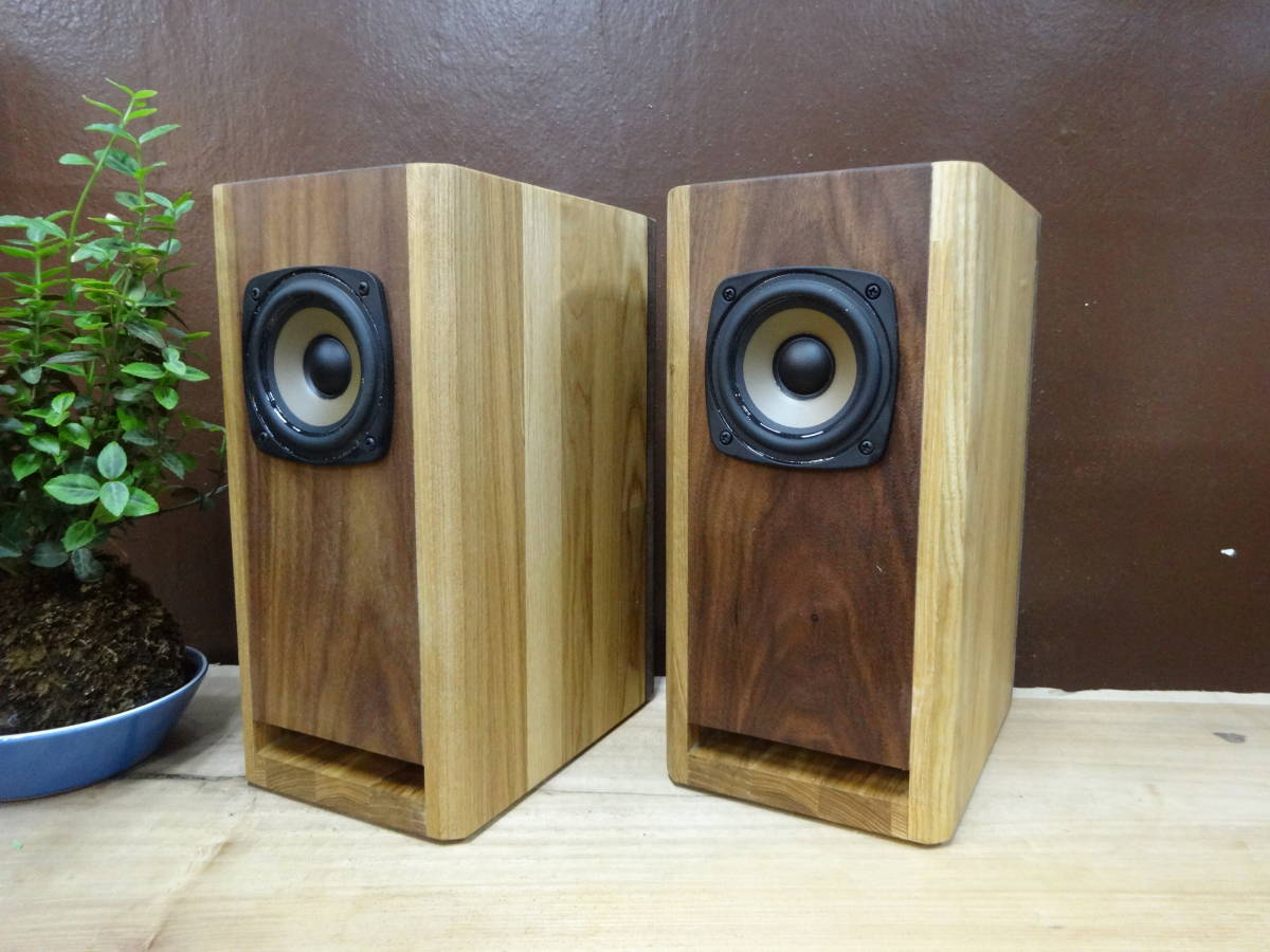 ★TDB8-WTB1★Hand Made SP / タモ(Ash)集成材t15 + Bウォルナット無垢材 ダブルバフレス エンクロージャー & TangBand 3in・FRユニット