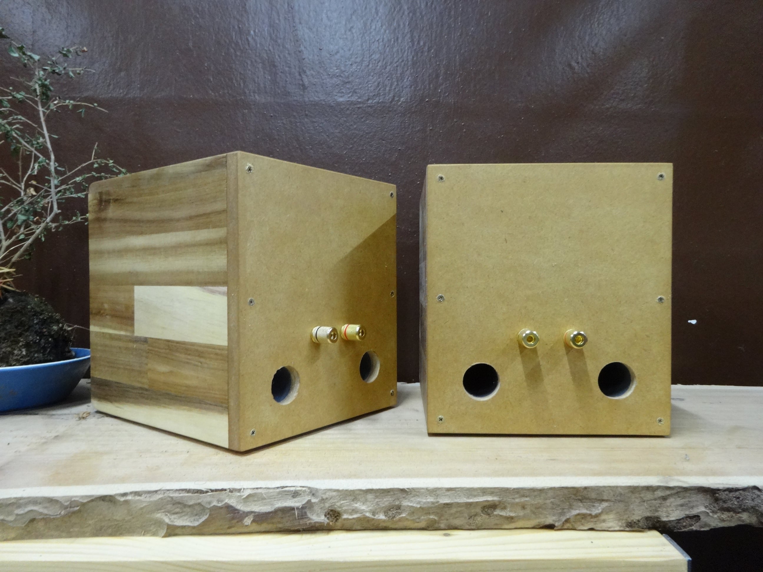 ACB10-WT02★Hand Made Speaker / アカシア集成材t15 + BKウォルナット無垢材 CUBICエンクロージャー & 25W TC 4in ・FRユニット