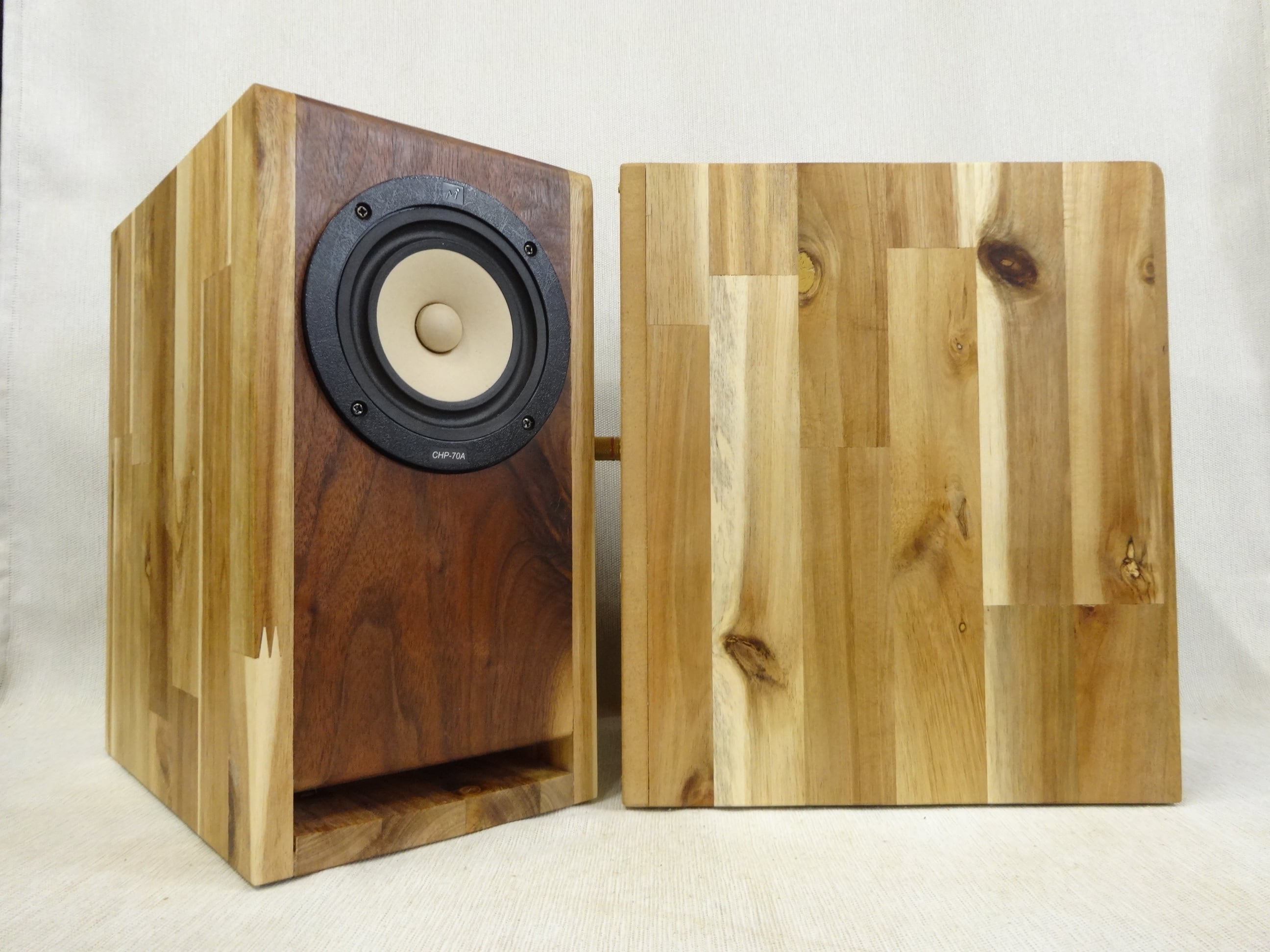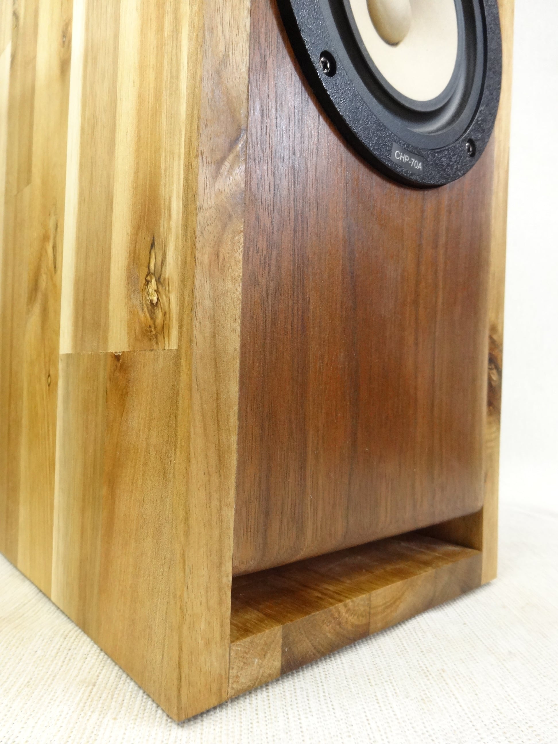 ADB10H-WM6★Hand Made SP / アカシア集成材 + BKウォールナット無垢材 Wバスレフエンクロージャー(7.4L) & MarkAudio 4" FRユニット