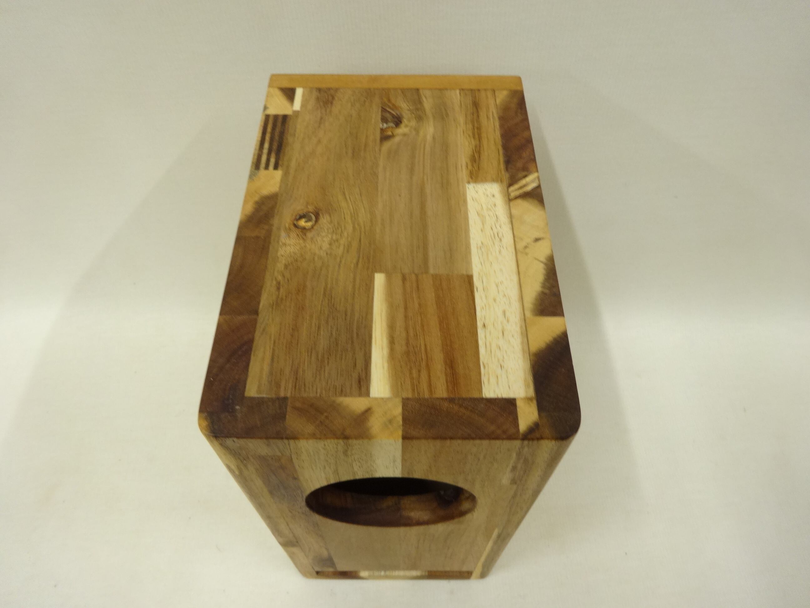 使用する、アカシアは硬質で弾性ある広葉樹で、集成材はモザイク調の色調が豊かで木目が非常に美しい材で、歪が少なくスピーカー・エンクロージャーには最適な材です。