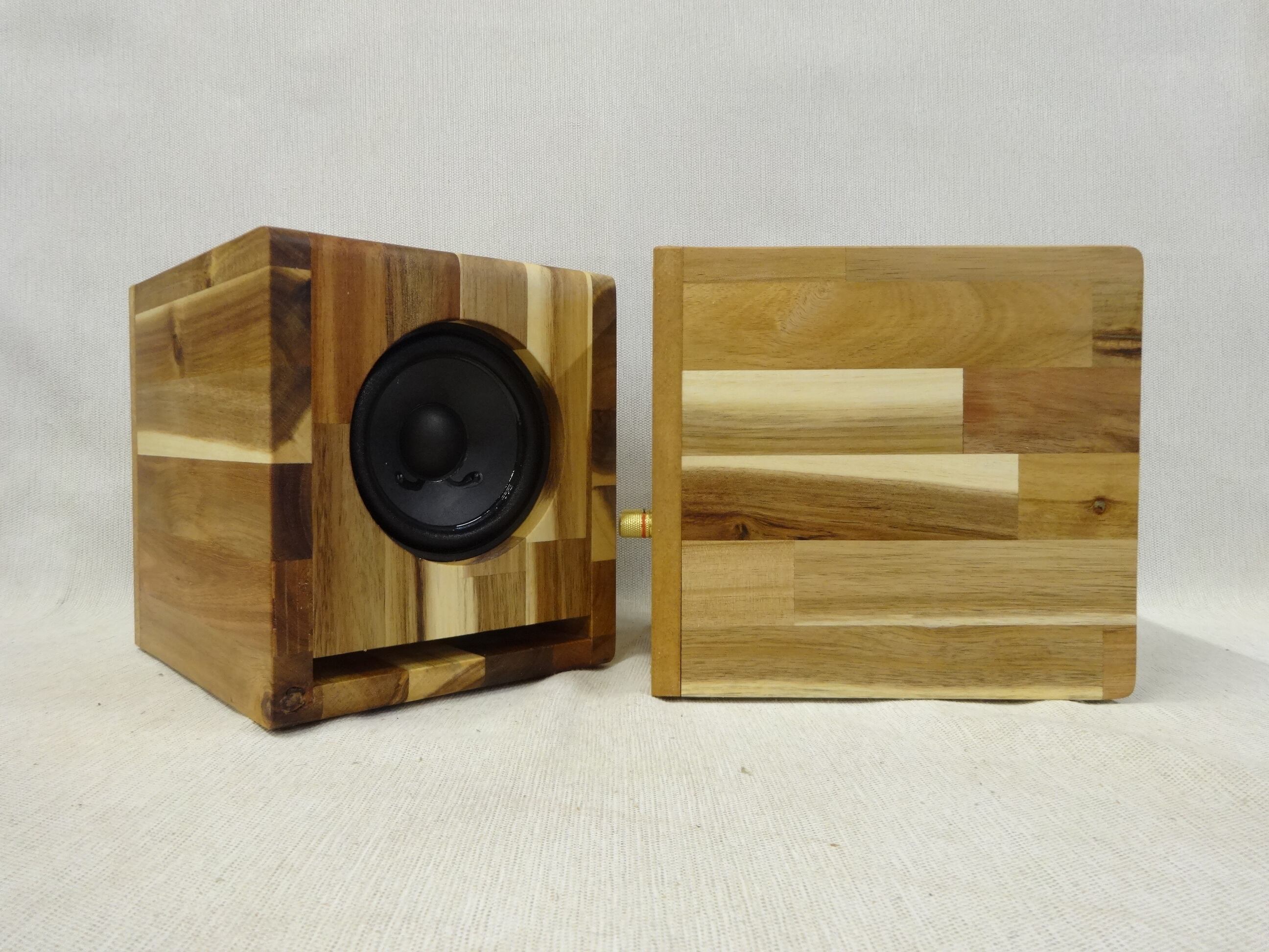 CCB10-T07★Hand Made Speaker/ アカシア集成材t15mm キューブデザイン・バスレフ エンクロージャー & 25W 東京コーン 4" FRユニット